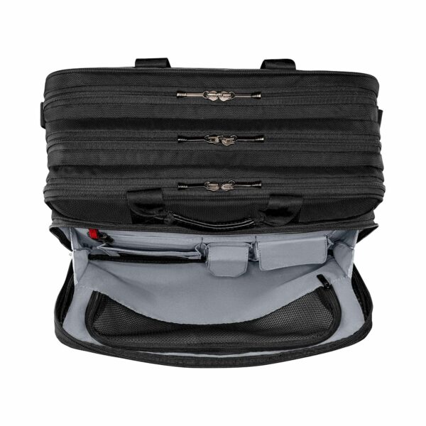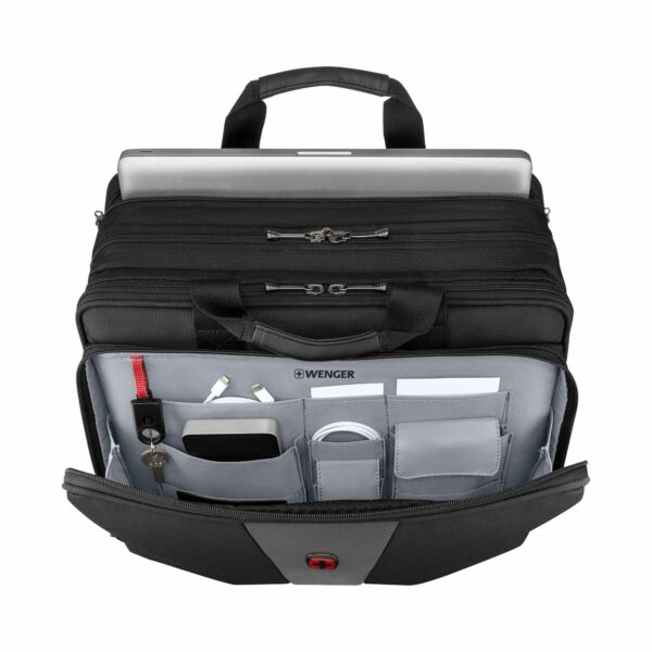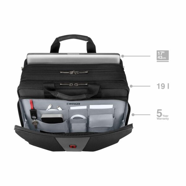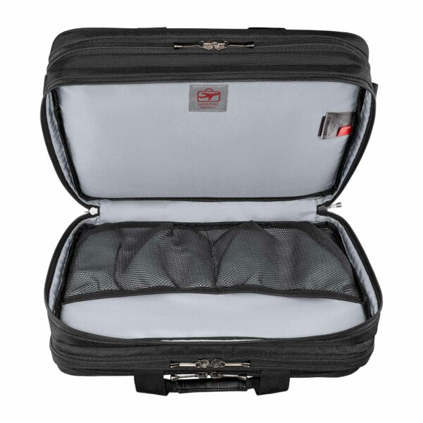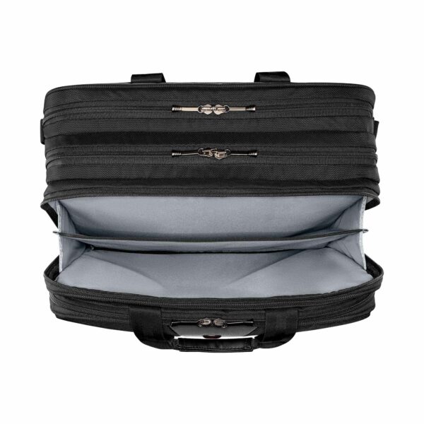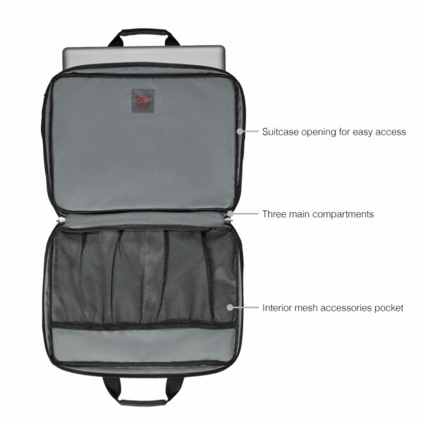 Ylivertaisella tekniikallaan ja kevyellä mukavuudellaan tämä kotelo on tyylikäs säilytysratkaisu kiireiselle ammattilaiselle. Pehmustettu kannettavan tietokoneen lokero täyttää kaikki teknisen suojan vaatimukset, ja tarvikkeiden järjestelijä pitää muun varusteesi ja tekniikkasi järjestyksessä. Erillinen asiakirjatasku huolehtii papereistasi, kun taas säädettävät pehmustetut olkahihnat ja pehmustetut kahvat takaavat mukavan matkan.