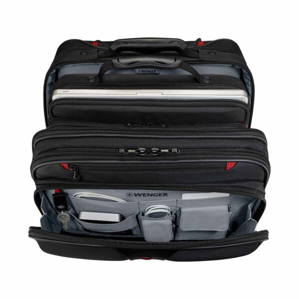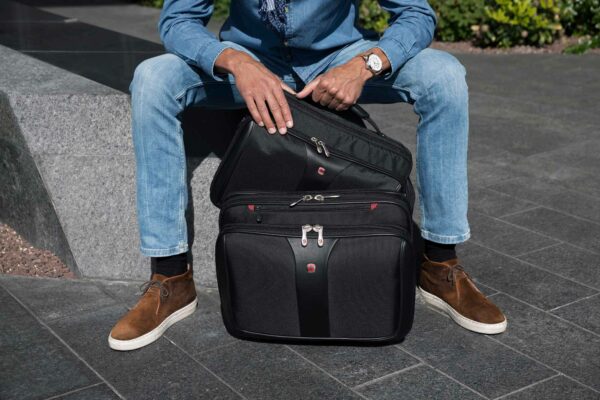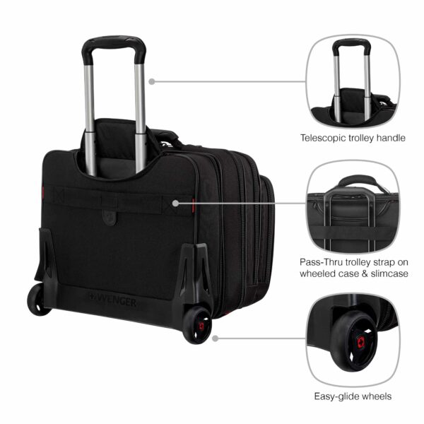 Patriot koostuu Comp-U-Rollerista, jossa on ylimääräinen lokero kannettavan tietokoneen suojaamiseksi, sekä vastaavasta irrotettavasta ohuesta kannettavan tietokoneen kotelosta, jotta voit vaihtaa matkatavaroita tarpeen mukaan. Säilytystasku pitää päivittäiset tavarat järjestyksessä, kun taas yöpymistaskussa on tilaa vaatteille. Ulosvedettävä tiedostojen jakaja ja pikatasku tarjoavat nopean pääsyn tavaroihin, kun olet liikkeellä. Helposti rullattavat pyörät helpottavat liikkumista ja ergonominen kahva takaa optimaalisen mukavuuden.