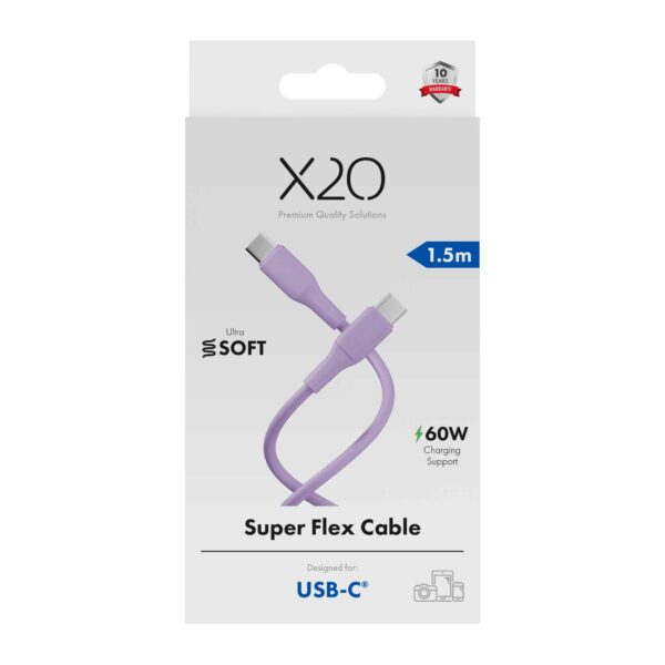 X2O Soft-Touch Silicone Series on sotkeutumaton USB-C-C-kaapeli, jossa on pehmeä silikonikuori. Kaapelit ovat USB 2.0 -standardin mukaisia, ja kestävän johdon rakenteen, valetun kuoren ja nikkelipinnoitettujen liittimien ansiosta ne ovat kestäviä ja helppokäyttöisiä.