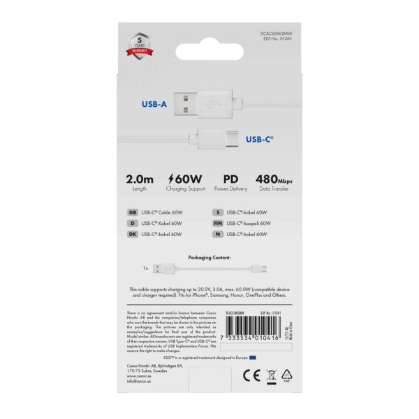 X2O Premium Basic -sarja tarjoaa huippulaatua ja edistyksellisiä ominaisuuksia jokapäiväiseen käyttöön. Sarjassa on kaksi mallia: USB-A–C ja USB-C–C, ja kolme eri pituutta: 0,5 m – 1,2 m – 2,0 m.