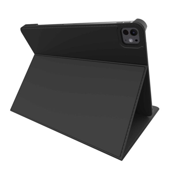 Kotelon avulla voit asettaa iPadin kolmeen eri asentoon. Valitse täydellinen katselukulma videopuheluita, selaamista tai suosikkisarjojesi katsomista varten. Huolellisesti suunnitellun muotoilun ansiosta painikkeet, latausportti ja kamera ovat edelleen käytettävissä.