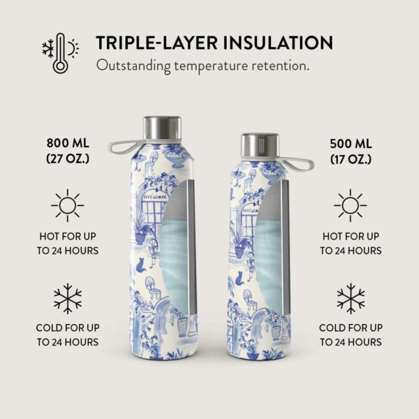 Jotta BURGA-vesipullosi pysyy upean näköisenä ja toimii moitteettomasti, pese se käsin vain miedolla pesuaineella. Vältä hankaavia sieniä tai puhdistusaineita, äläkä koskaan, koskaan laita sitä astianpesukoneeseen tai mikroaaltouuniin. Vältä pitkäaikaista liottamista, jotta painatus säilyy elinvoimaisena.