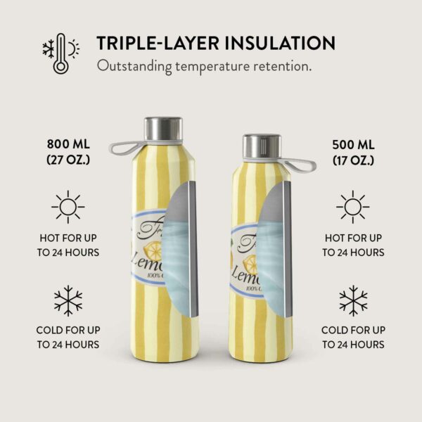 500 ml:n vesipullo: Pitää juomat lämpiminä jopa 24 tuntia ja kylminä jopa 24 tuntia.