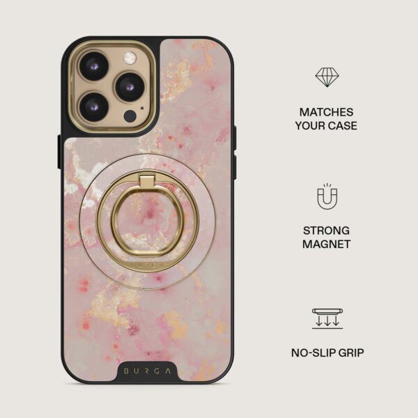Tämä magneettinen sormipidike kiinnittyy mukavasti paikalleen – ilman liimaa, ilman vaivaa. Pidä siitä kiinni, kun haluat selata yhdellä kädellä, käytä sitä kätevänä telineenä, kun haluat katsella handsfree-tilassa, tai tyylikkäänä lisävarusteena, joka sopii täydellisesti BURGA-kuoreesi.