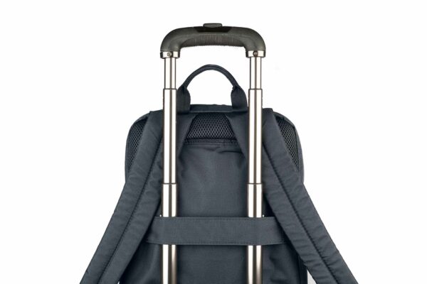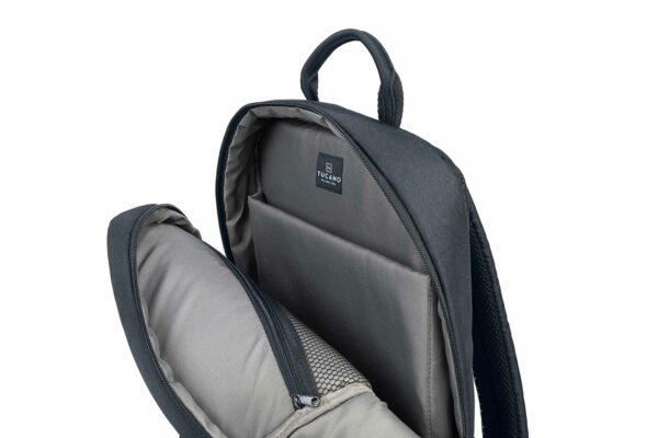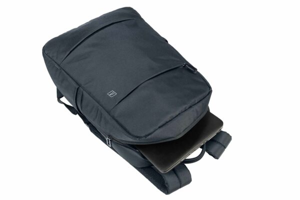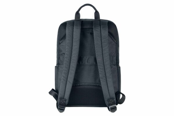 Kevyt kangaspussi, valmistettu kierrätetystä muovista, moderni ja kompakti muotoilu. Sopii erinomaisesti MacBook-tietokoneille ja kannettaville tietokoneille, joiden koko on enintään 15,6″. Säädettävät, pehmustetut olkahihnat, ergonominen selkäosa ja tasainen ulkoinen säilytystasku edessä tekevät repusta mukavan ja käytännöllisen sekä töihin että vapaa-aikaan.