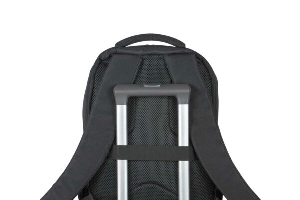 Käytännöllinen ja kestävä reppu, joka on valmistettu kierrätetystä muovista valmistetusta kankaasta. Repussa on pehmustettu sisätasku kannettavalle tietokoneelle tai tabletille, sivutaskut pulloille ja sateenvarjoille sekä pehmustetut, säädettävät olkahihnat. Siinä on tilava vetoketjullinen lisätarvikkeita ja asiakirjoja varten tarkoitettu lisäosasto edessä, joka sopii erinomaisesti järjestämään lisätarvikkeet ja asiakirjat.