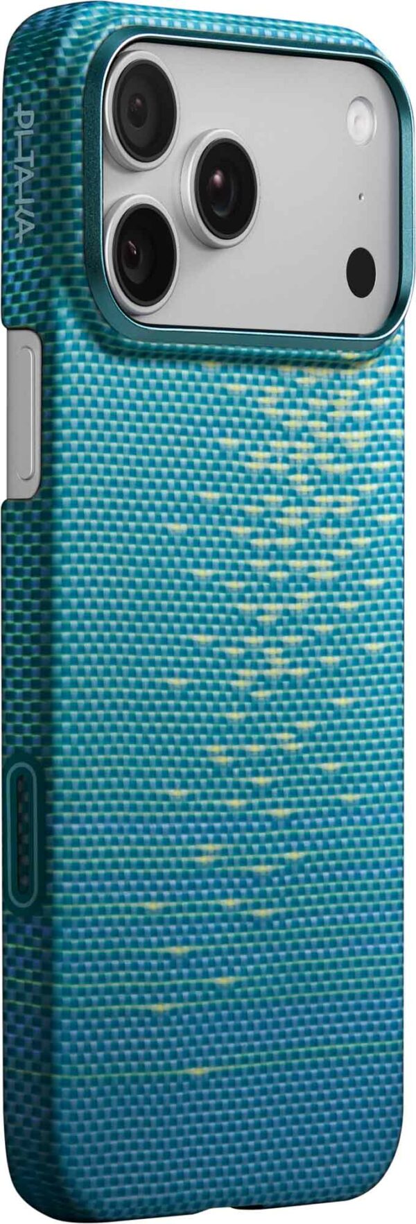 Alle 1 mm paksu kotelo suojaa kameran painiketta aramidikuidulla, kun taas piilotettu kapasitiivinen kerros mahdollistaa vaivattoman painamisen ja pyyhkäisyn. Se on saumattomasti integroitu ja säilyttää aramidirakenteen tarkkaa ja responsiivista hallintaa varten.