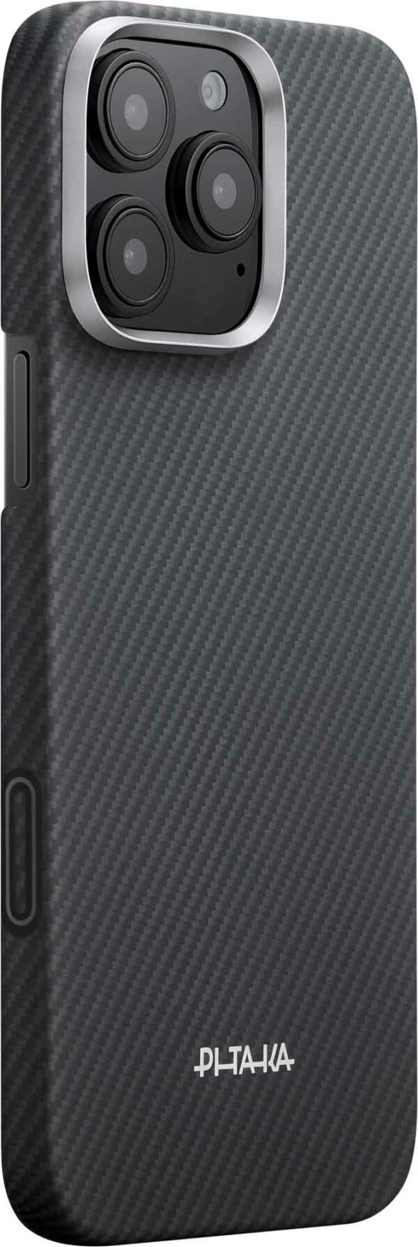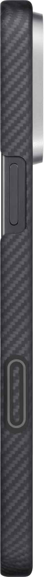 Alle 1 mm paksu kotelo suojaa kameran painiketta aramidikuidulla, kun taas piilotettu kapasitiivinen kerros mahdollistaa vaivattoman painamisen ja pyyhkäisyn. Se on saumattomasti integroitu ja säilyttää aramidirakenteen tarkkaa ja responsiivista hallintaa varten.