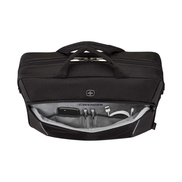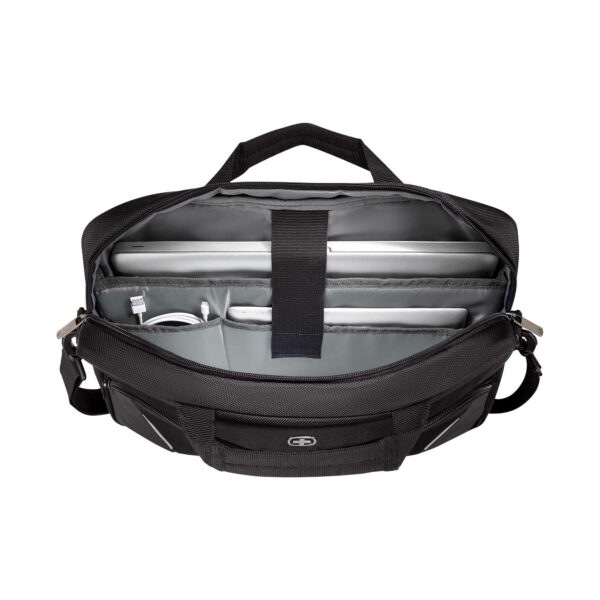Tämä kompakti laukku on valmistettu kierrätetyistä PET-pulloista ja siinä on tilava päälokero, jossa on lokero 16 tuuman kannettavalle tietokoneelle ja 11 tuuman tabletille. Asiakirjojen ja tarvikkeiden säilytyslokero pitää asiakirjat ja tarvikkeet järjestyksessä ja helposti saatavilla.