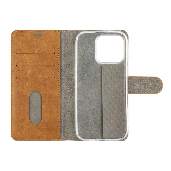 Kun avaat etuosan, löydät suuremman lokeron seteleille ja kolme pienempää lokeroa luottokorttien säilyttämiseen. Magneettilukko varmistaa, että kotelo sulkeutuu turvallisesti. Avoin kotelo voidaan säätää vaakasuoraan telineasentoon mukavaa videon katselua varten.