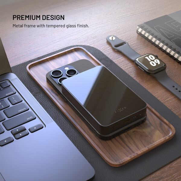 Powerbankin kotelo on valmistettu tyylikkäästä mutta kestävästä metallikehyksestä ja karkaistusta lasista, ja latauspinnan mattapinta suojaa puhelinta naarmuilta. FIXED MagZen 10 Crystal on tyylikäs ja tehokas ratkaisu kaikille, jotka haluavat riittävän virran saatavilla milloin tahansa.