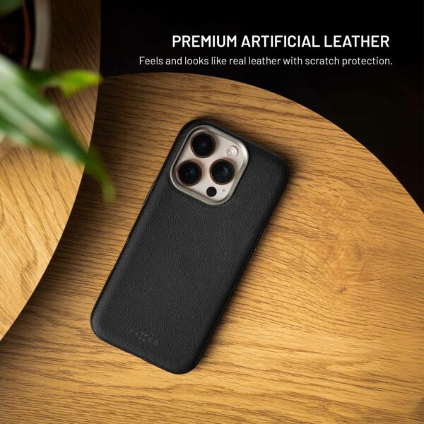 FIXED MagLeather -kotelo MagSafe-tuella yhdistää tyylikkään muotoilun ja käytännöllisen suojan puhelimellesi. Pinta on valmistettu korkealaatuisesta vegaanisesta nahasta, joka näyttää ja tuntuu aidolta nahalta, on naarmuuntumaton ja säilyttää tyylikkään ulkonäkönsä pitkään.