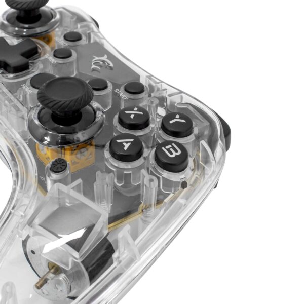 800 mAh:n li-polymeeriakku takaa 5–10 tuntia eeppistä pelikokemusta. Tämä läpinäkyvä peliohjain painaa 220 g. LEGION sopii kaikkeen Androidista iOS:ään (MFI), N-Switchistä Windowsiin (langallinen) ja PS4/PS3:een.