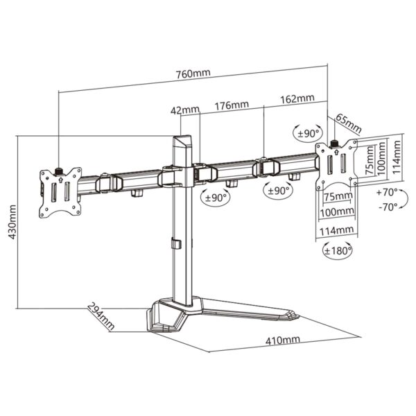 Paranna asennustasi tällä pöytäseinätelineellä. Sen käsivarren ulottuvuus on 380 mm, ja se on suunniteltu 17–32 tuuman näytöille. Käännä ja kierrä helposti +90°–90° joustavuudella. Valmistettu teräksestä ja muovista, tyylikkäällä harmaalla viimeistelyllä. VESA-yhteensopiva, irrotettava levy ja kaapelinhallinta.