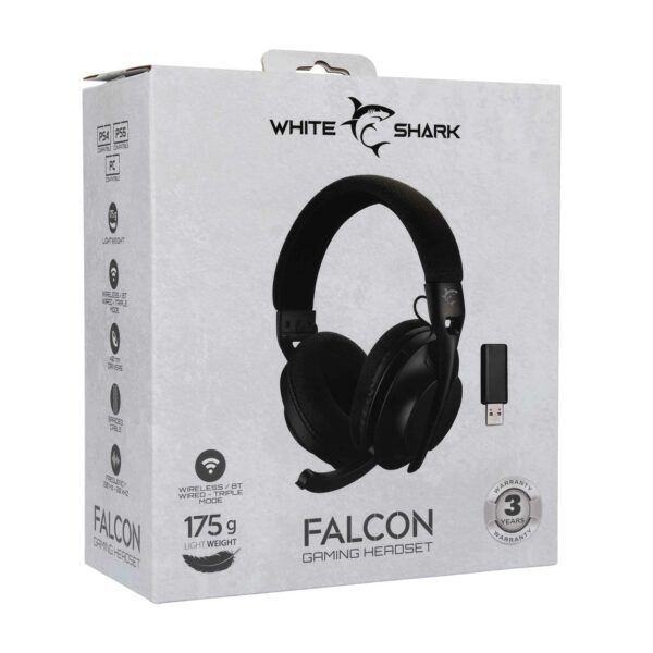 Vapauta sisäinen mestarisi White Shark Falcon -langattomilla pelikuulokkeilla. Koe kristallinkirkas ääni (20 Hz–20 kHz), joka herättää pelin jokaisen yksityiskohdan eloon 40 mm:n kaiuttimien ansiosta.
