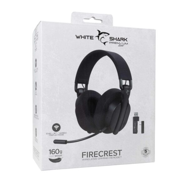 Koe rajaton pelaaminen ultrakevyillä (160 g!) langattomilla White Shark FIRECREST -kuulokkeilla.