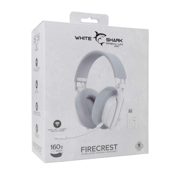 Koe rajaton pelaaminen ultrakevyillä (160 g!) langattomilla White Shark FIRECREST -kuulokkeilla.