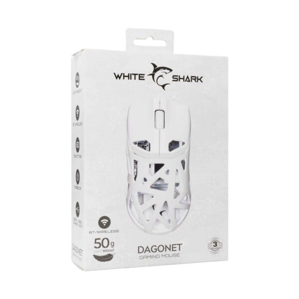 Kevyt, tehokas ja erittäin responsiivinen – White Shark Dagonet -pelihiiri on suunniteltu vakaville pelaajille. Paracord-kaapelilla, 12 000 DPI:llä (24 000 ohjelmiston kautta) ja kolminkertaisella liitännällä (BT, 2,4 GHz, USB) se tarjoaa tarkkuutta ja vapautta. Paino vain 50 g.