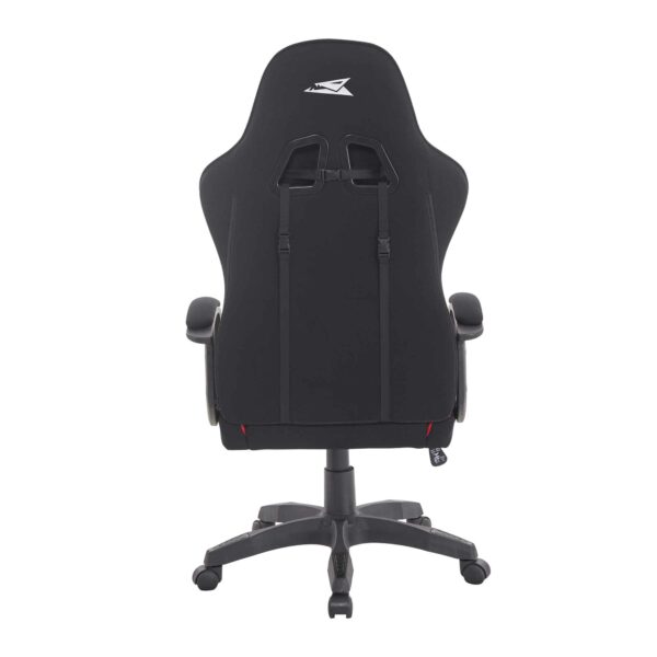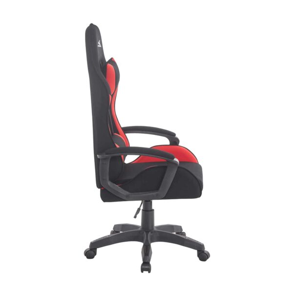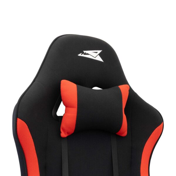 Siinä on pehmeä kangasverhoilu ja tukevat pää- ja selkätyynyt, ja se on suunniteltu pitkiä pelisessioita tai tuotteliaita työpäiviä varten. Vankka rakenne ja rohkea punainen ja musta muotoilu tuovat tyylikkyyttä ja toiminnallisuutta työpaikallesi.